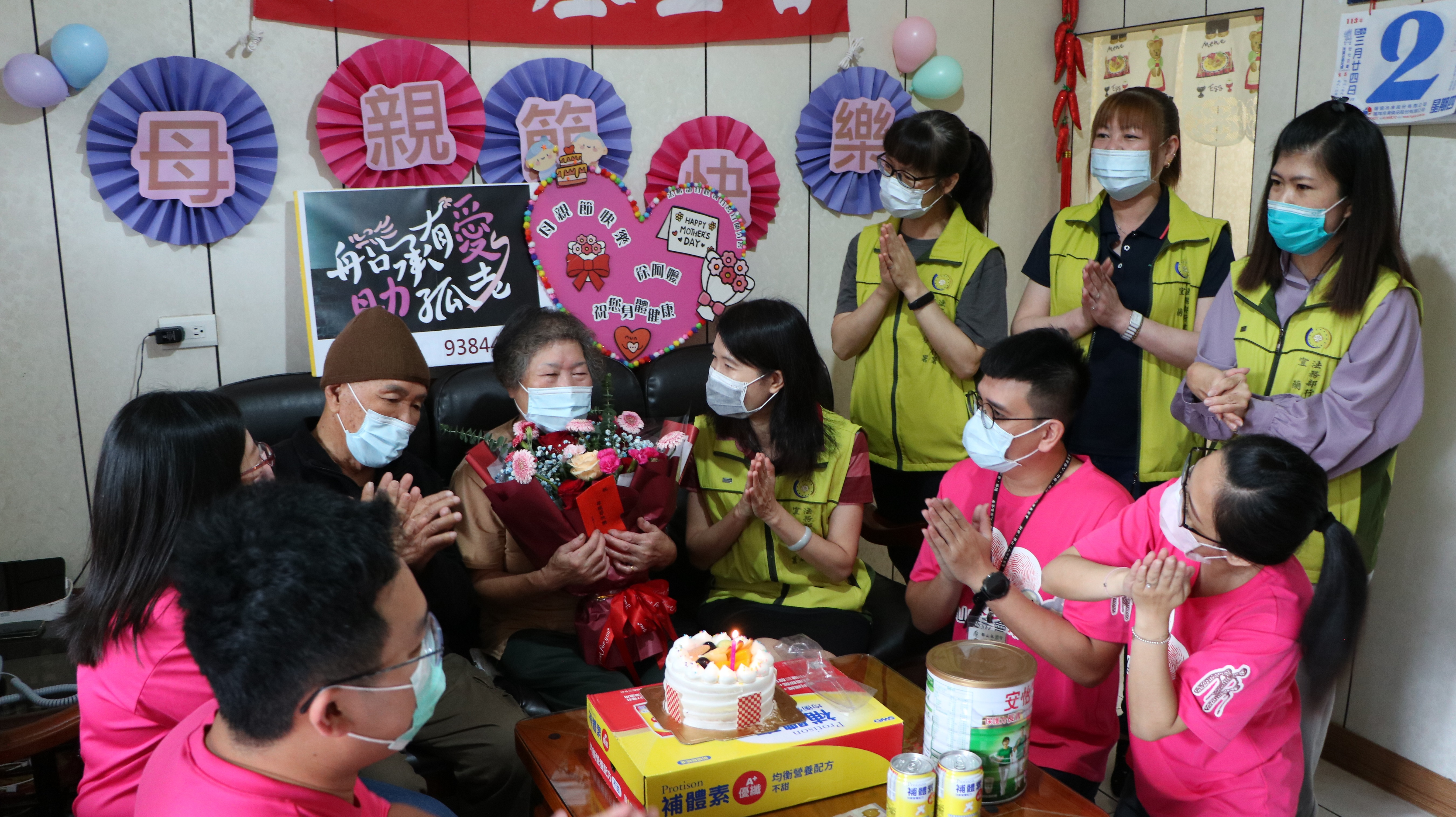 70多歲的徐姓阿嬤家境清寒,兩名子女因故離家,不僅身體有多處疾病須每月回診,尚須去罐頭工廠打工賺錢照顧更為年長的先生,處境堪憐。宜蘭分署獲知上情,攜手華山基金會到徐阿嬤的家中訪視關懷,華山基金會社工幫忙徐阿嬤肩頸按摩及修剪指甲,宜蘭分署愛心社同仁協助塗抹護手霜,指導穴道按摩及手指運動,以活絡筯骨、激活腦力,更送上滿載心意的手製賀卡及康乃馨花束,大家和阿嬤、阿公吹蠟燭、切蛋糕,歡度母親節。阿嬤思及不曾盡孝的子女,更是數度哽咽,感慨從來不曾這樣被重視與關懷,非常感念宜蘭分署及華山基金會的美意。
