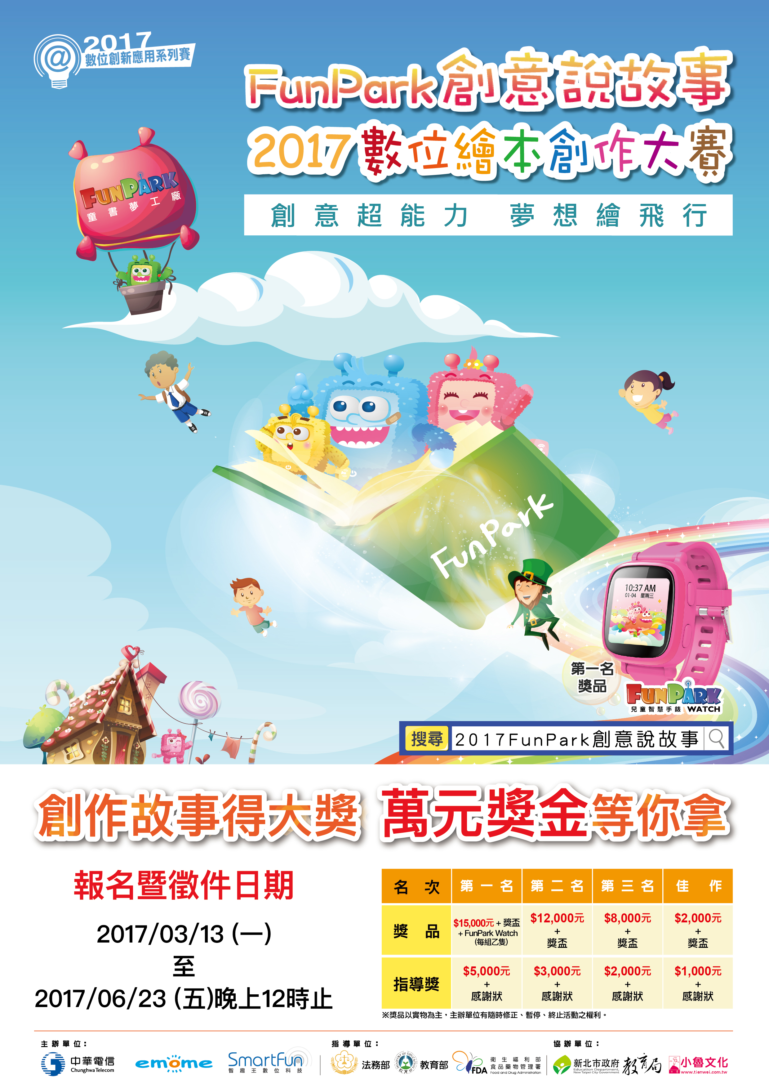 法務部結合智趣王數位科技股份有限公司辦理2017「FunPark創意說故事-數位繪本創作大賽」活動,鼓勵國小師生踴躍報名參加